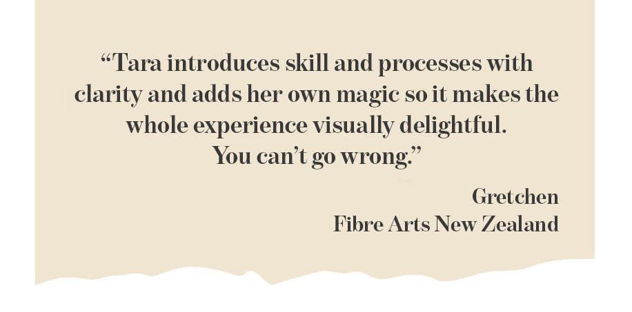 Students are fully supported by the Fibre Arts Take Two team and are invited to join a private Facebook community where you can share your progress directly with Tara.